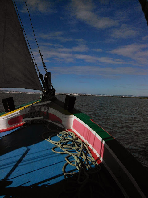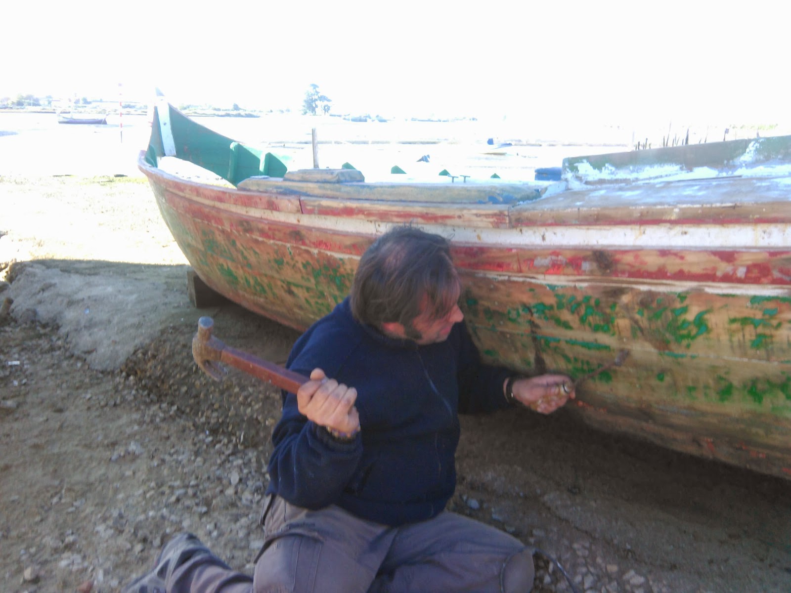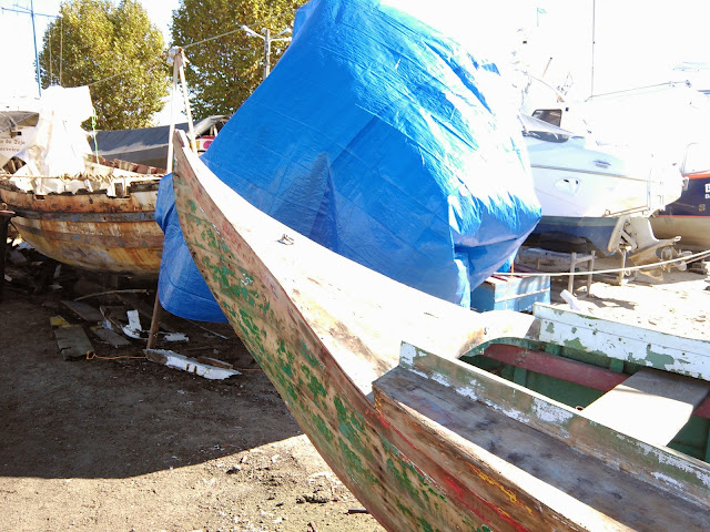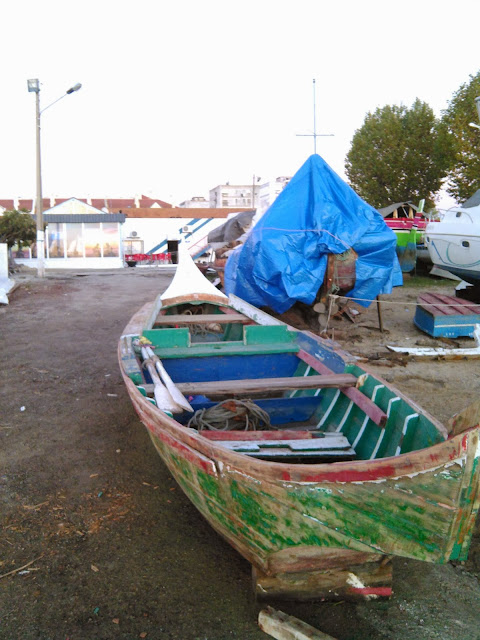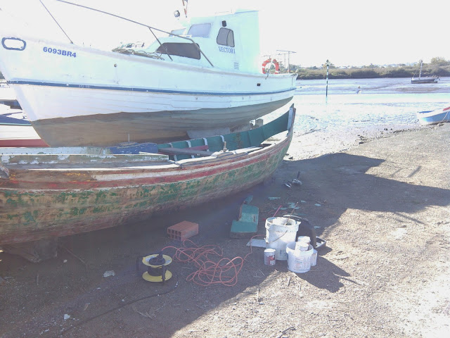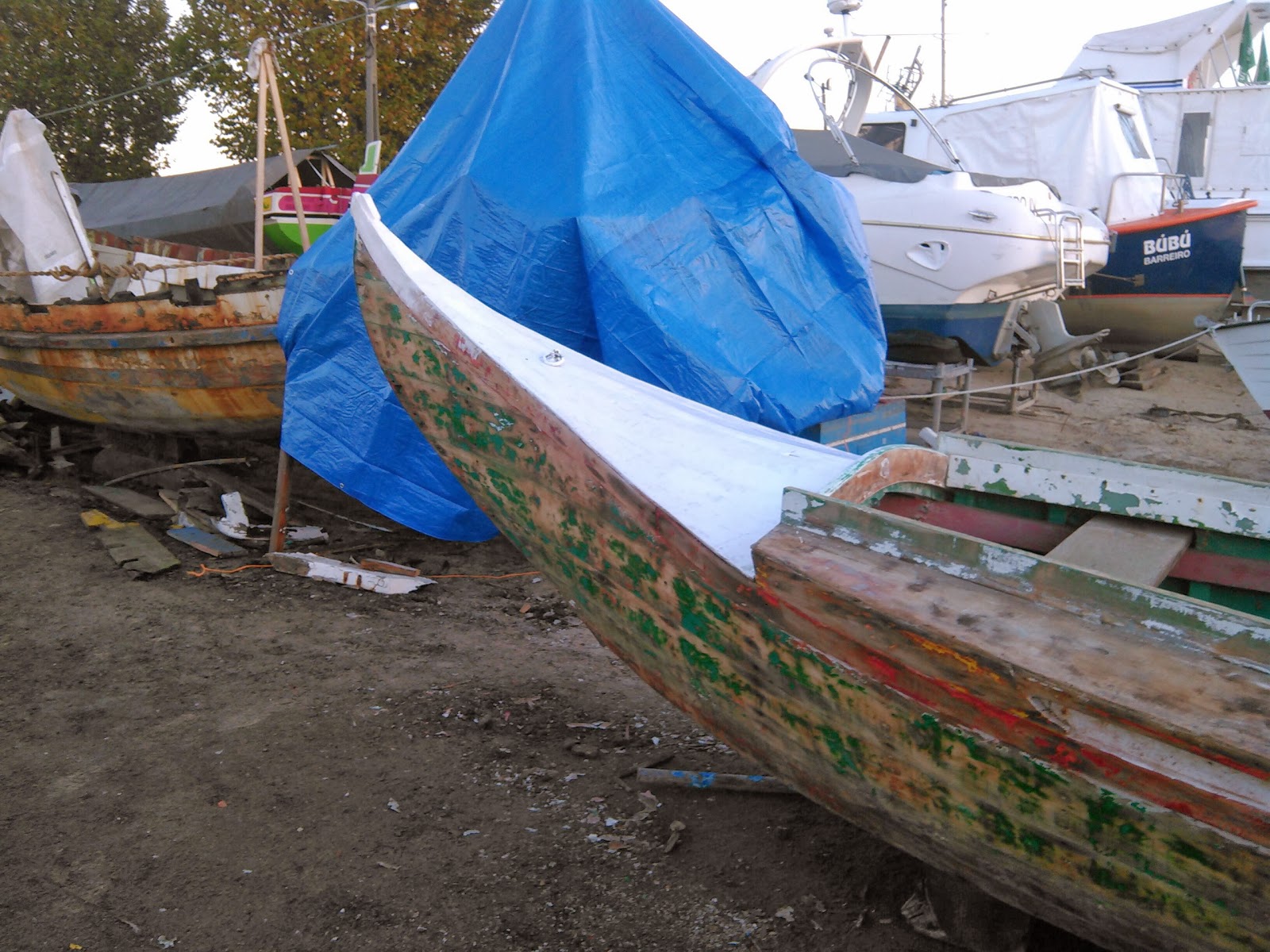 O Salsicha já está na rampa Do Centro Náutico Moitense.  Hoje,  dia 24 de Novembro,  lixei e repreguei o bote  ...