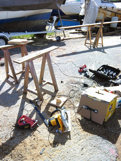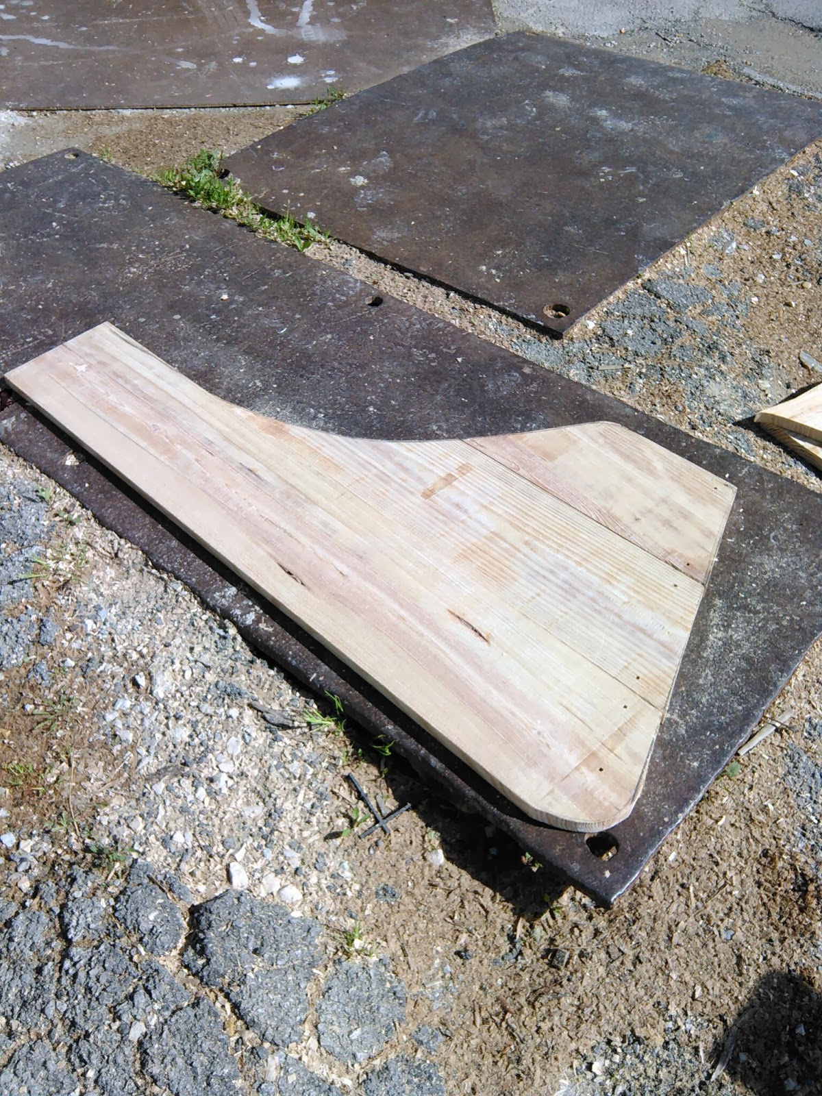 Aproveitei e encalhei a bateira na rampa para colocar o leme e comecei os remos. Falta: remos, paneiros, ferragens, vistoria, palamenta e mar...